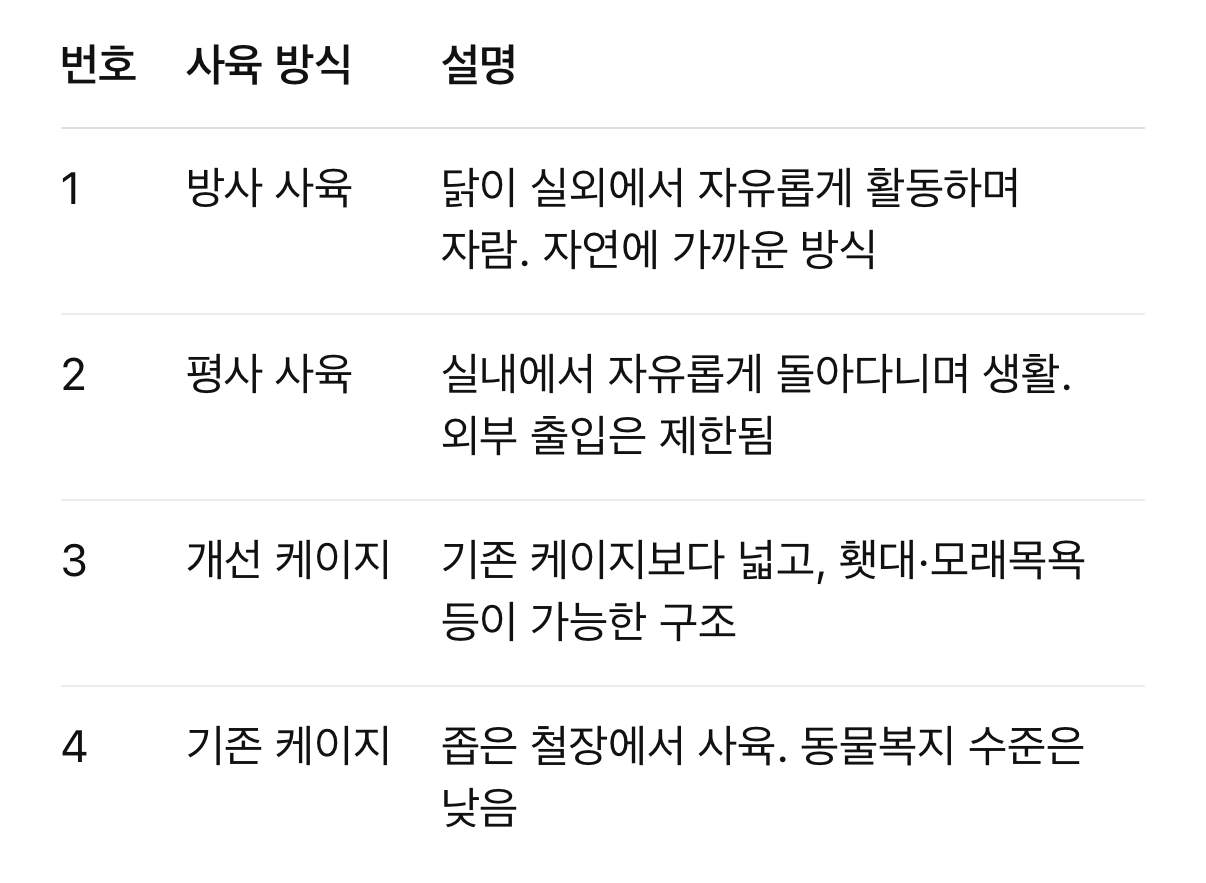 • 생산환경 1~2번: 동물복지 고려한 좋은 선택