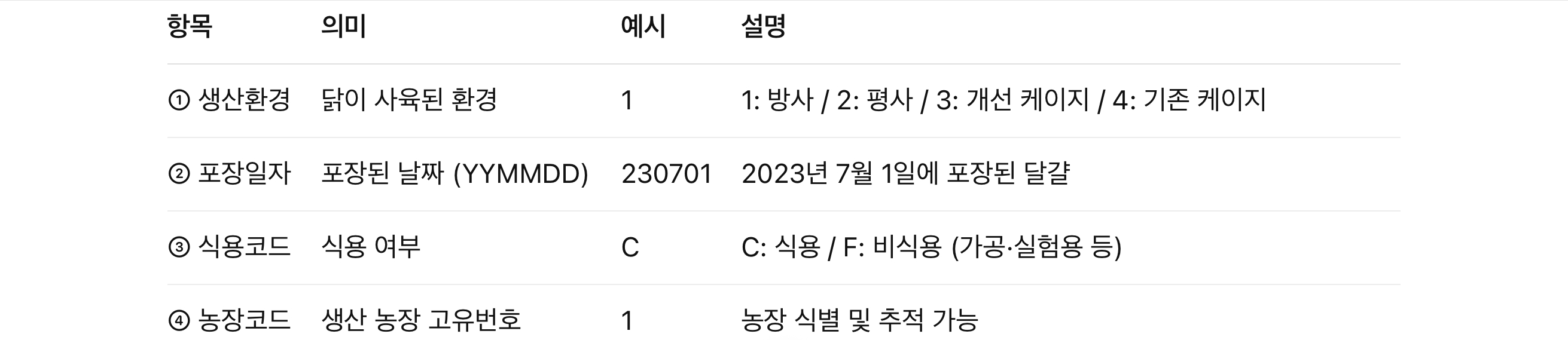 마지막 숫자는 달걀을 생산한 농장의 고유 번호예요.