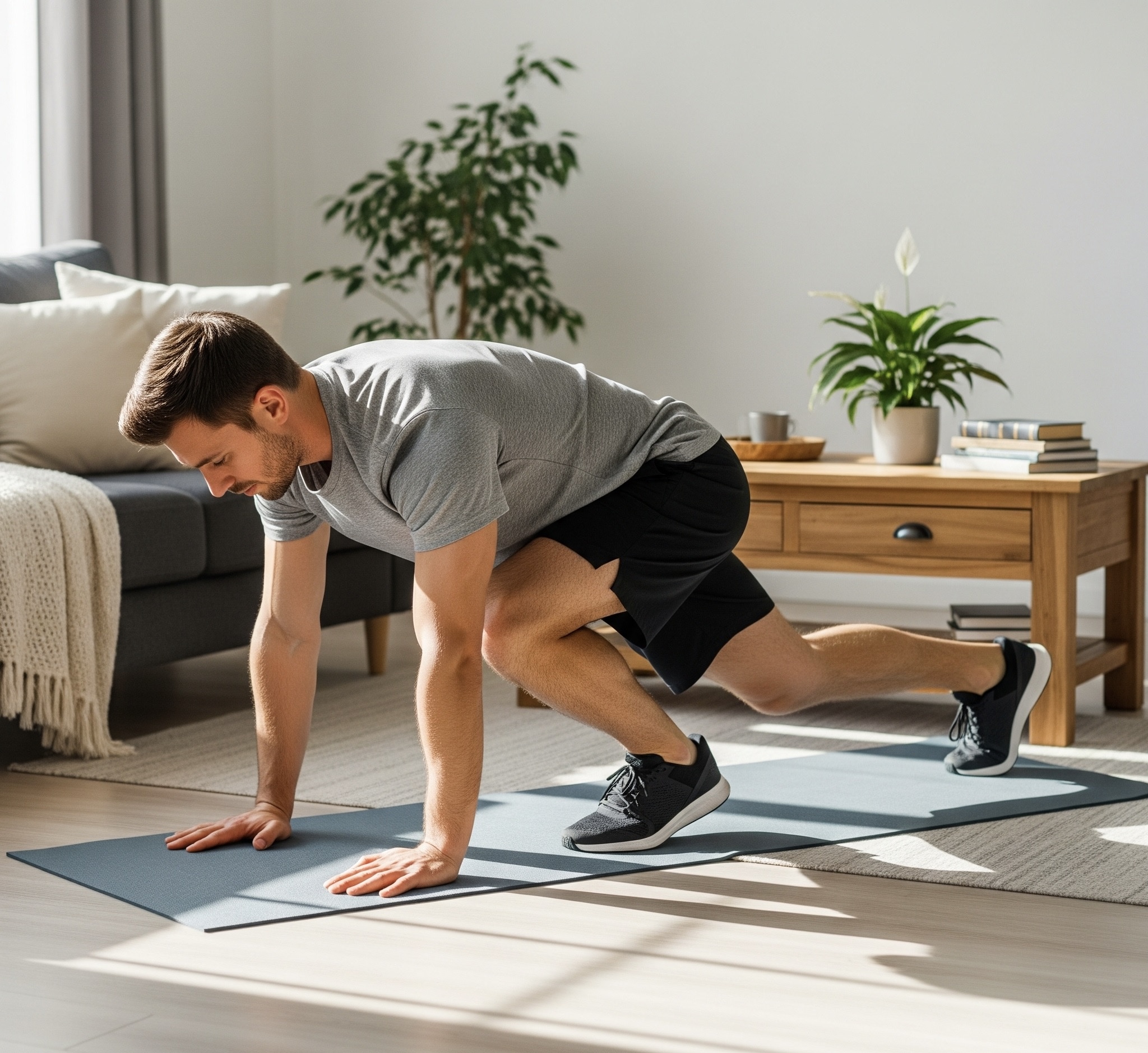 • 방법: 팔굽혀펴기 자세에서 양쪽 무릎을 번갈아 가슴 쪽으로 빠르게 끌어당깁니다.