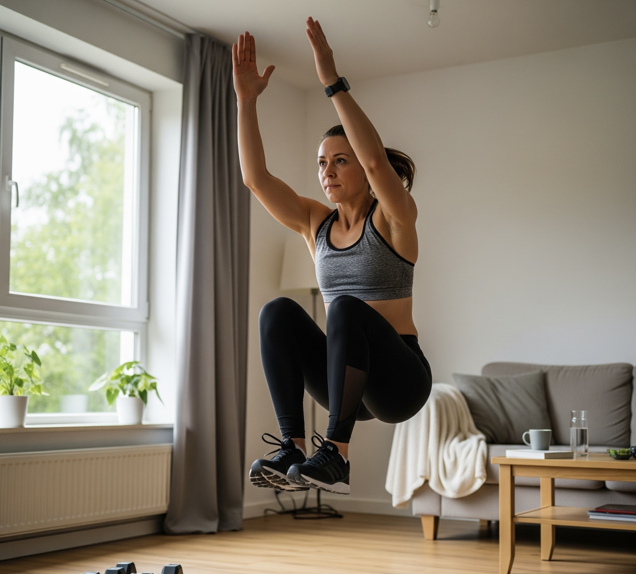 • 방법: 서 있다가 앉아서 손을 바닥에 짚고, 다리를 뒤로 쭉 뻗습니다. 다시 다리를 당겨 일어서며 점프합니다.