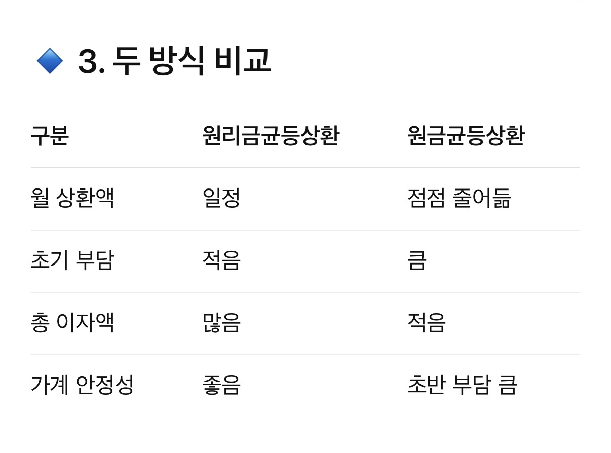 • 매달 일정한 지출 관리가 중요한 분 → 원리금균등상환