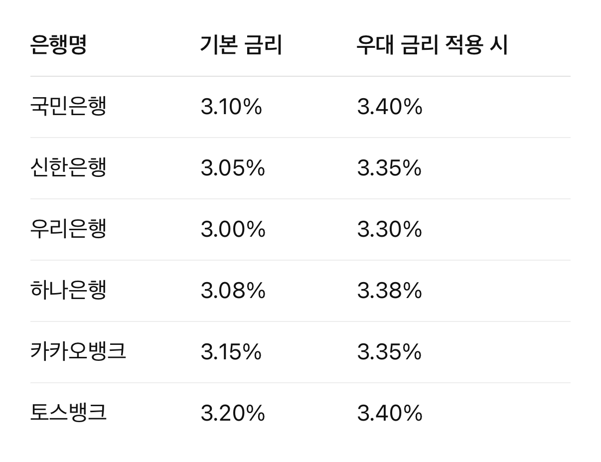아래 금리는 2025년 8월 기준, 1년 만기·세전 금리입니다. (조건에 따라 변동 가능)